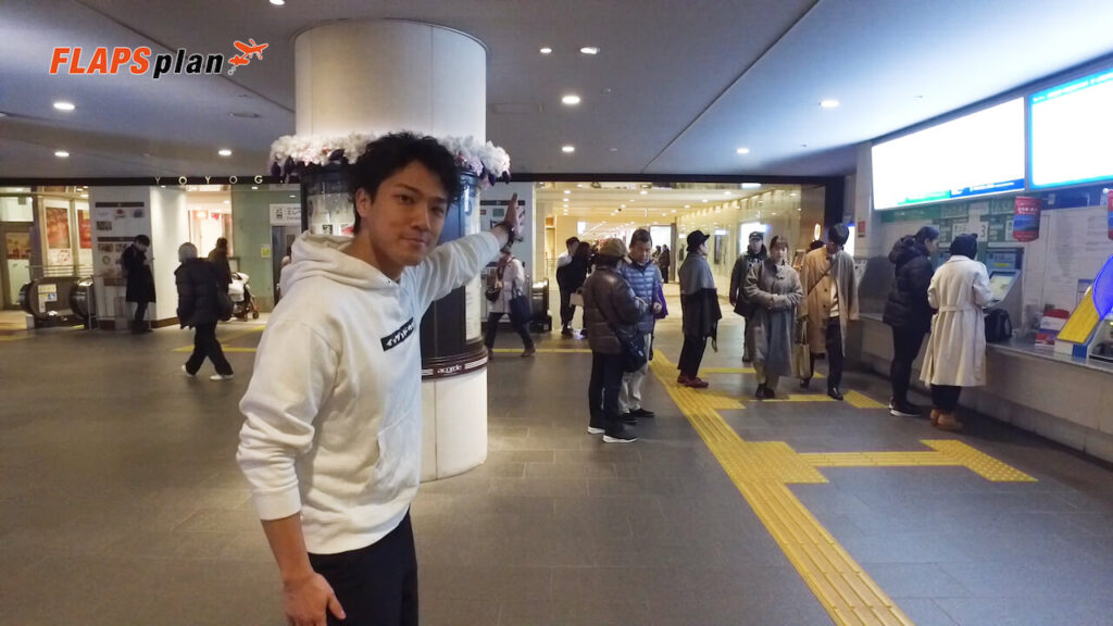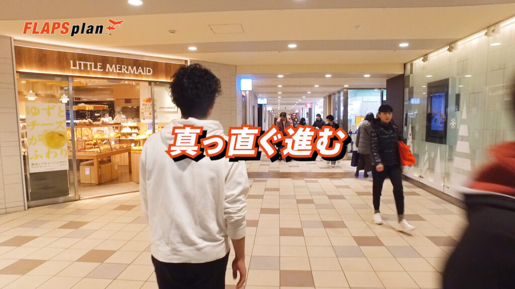 (改札前に階段とエスカレーターがありますが降りずに右側の通路を進んでください。)