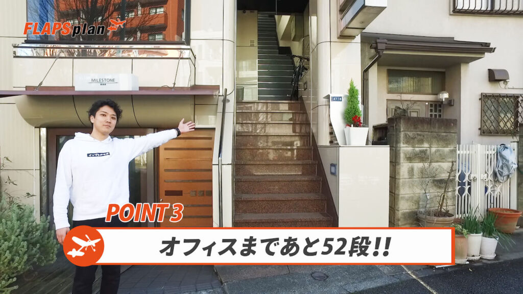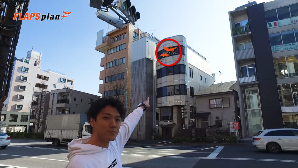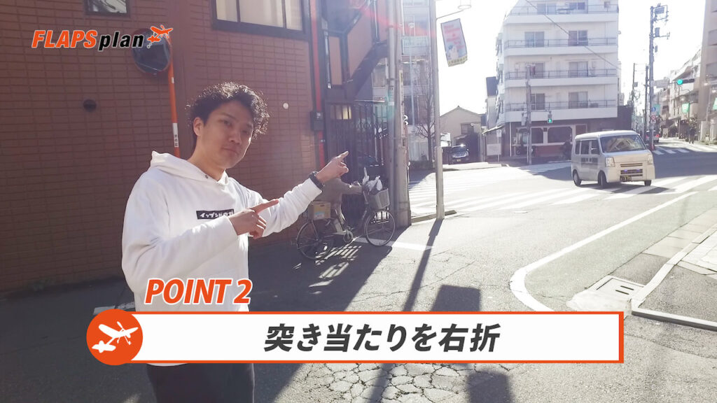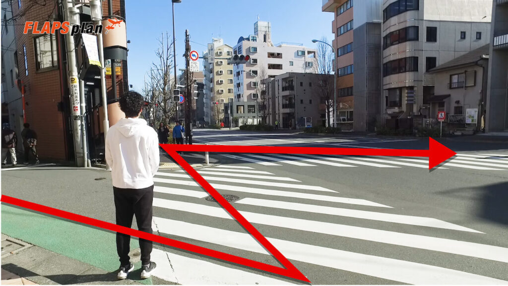5.慎重に反対車線側に渡り、左に42歩で弊社の下に到着します。