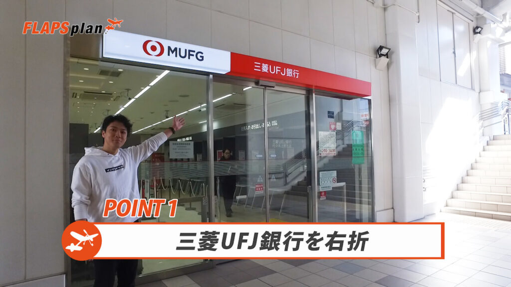 2.エスカレーターを降り旧東京三菱UFJ銀行を右折し、直進。(約2分程)