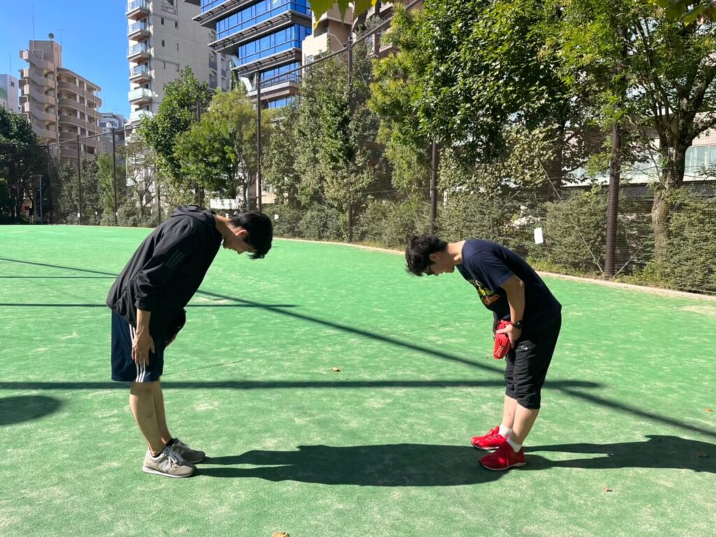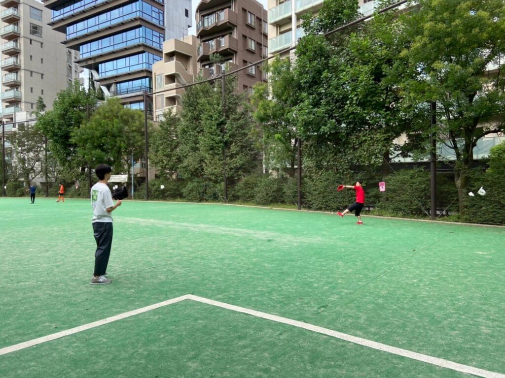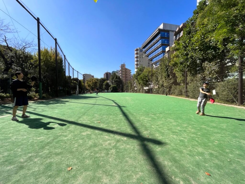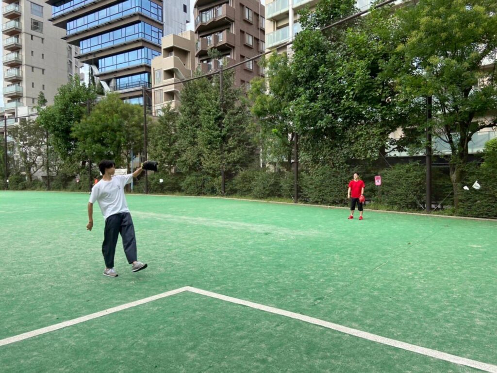 活動内容は朝8時半から1時間程度、会社近所の代々木深町小公園でただキャッチボールをします。