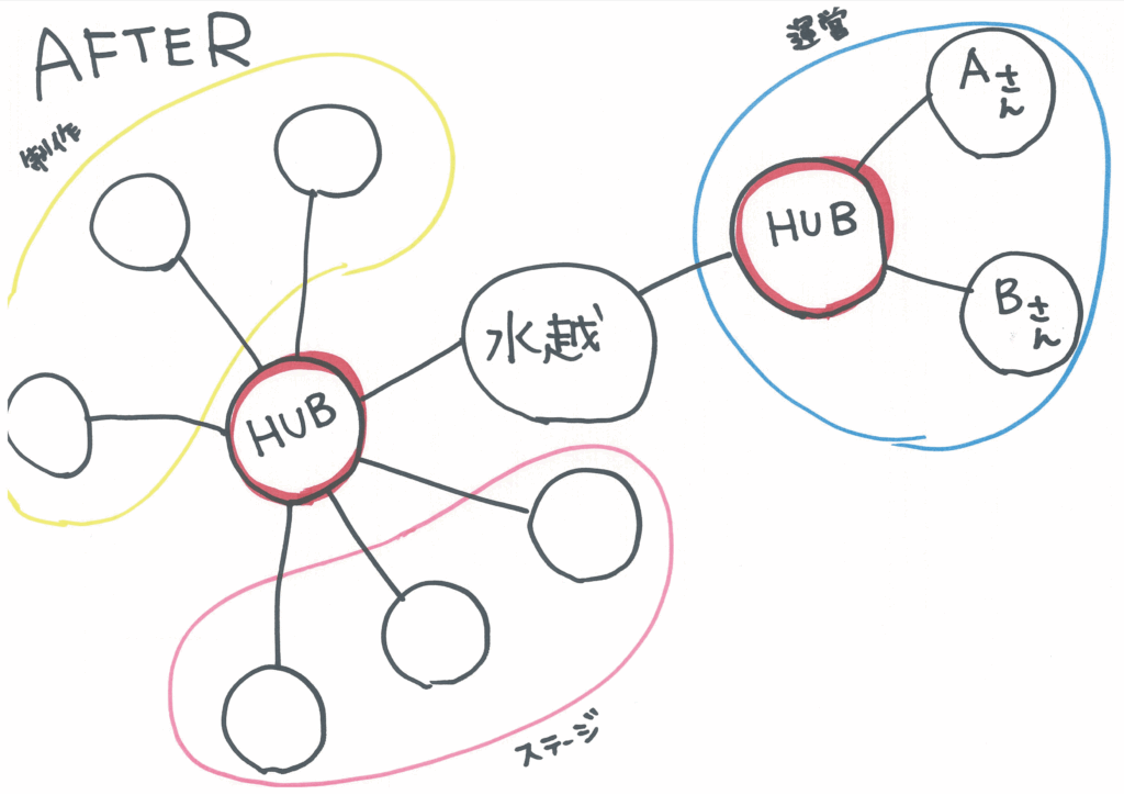 ということで、私が放射状にしてしまい、私としか繋がっていなかった(しかも連携を取ろうとはしない)人間関係を横同士で接着剤のようにくっつけてくれる人にお願いをしました。
