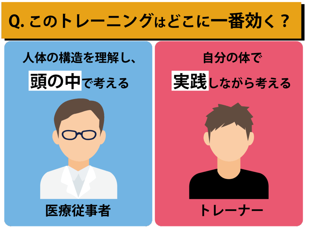 医療従事者はどちらかと言うとなぜそうなるのか?というエビデンスを求められることが多いため、理論を先行し頭で理解する。