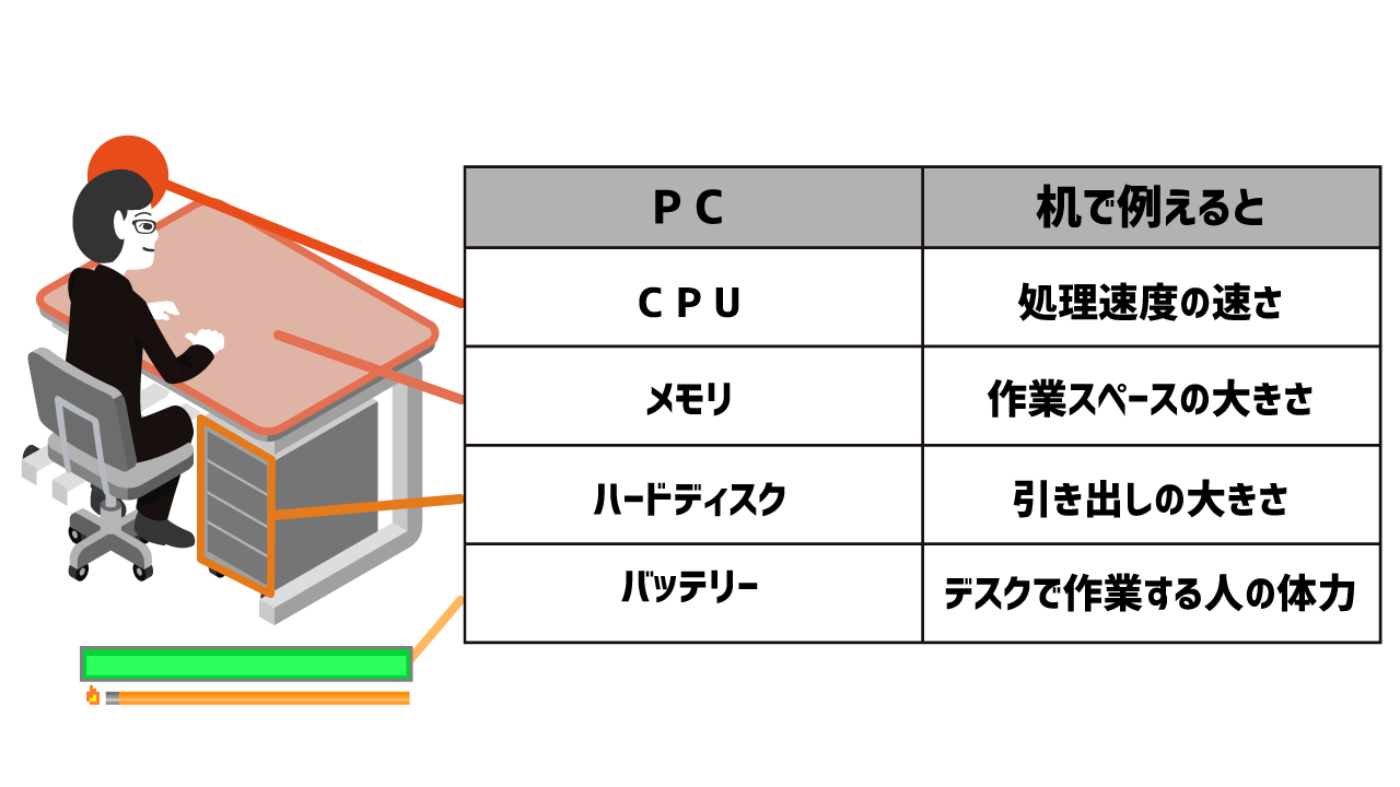 パソコンはよく机とそこに座っている人に例えられます。