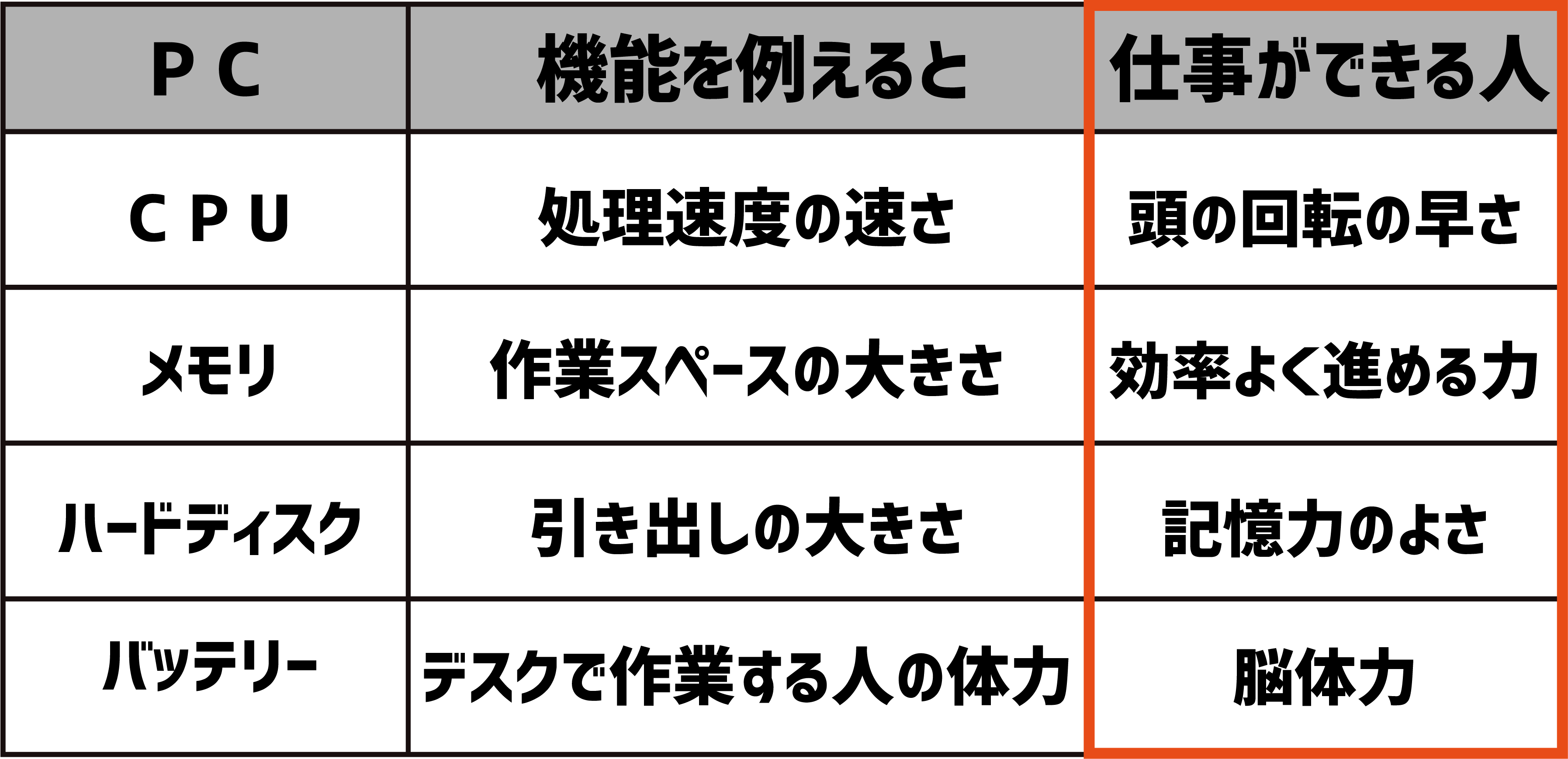 この仕事ができる人の特徴3つはレベルの高いパソコンとよく似ています。