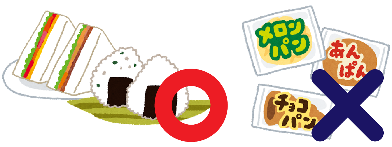ちなみに、菓子パンは「菓子」であり、「パン」ではないのでご注意を。